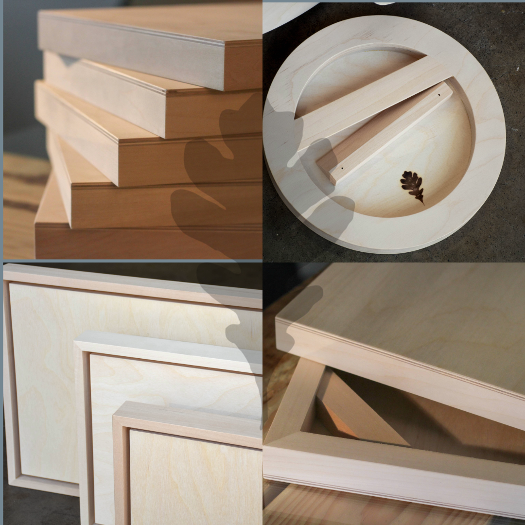 Basswood cradled panels with a finely sanded birch plywood surface.